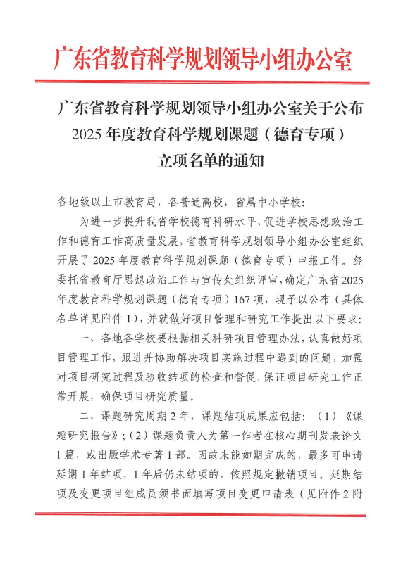 2026近日,广东省教育厅与广东省教育科学规划领导小组办公室相继公布了2025年度相关课题立项名单,广东省教育科学规划(德育)专项立项167项,广东省高校思想政治教育课题立项258项。威廉希尔此次申报获批3项课题立项,其中,广东省教育科学规划课题(德育专项)2项、广东省高校思想政治教育课题1项。学生处陈梅副教授主持申报的德育专项课题“同伴排斥对大学生不确定心理压力的影响机制与干预研究”(项目编号:2025JKDY074)聚焦于同...