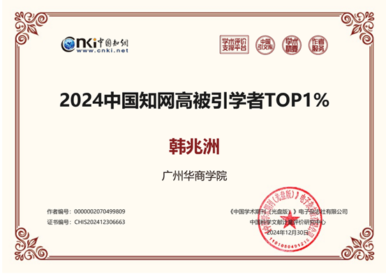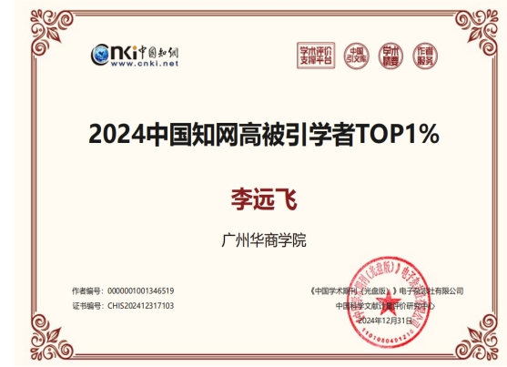 近日,中国知网中国科学文献计量评价研究中心公布了“2024中国知网高被引学者”预发布名单。威廉希尔韩兆洲、雷钦礼、李远飞、林海明、刘耀中、张海容等6名教师入选“2024中国知网高被引学者”。