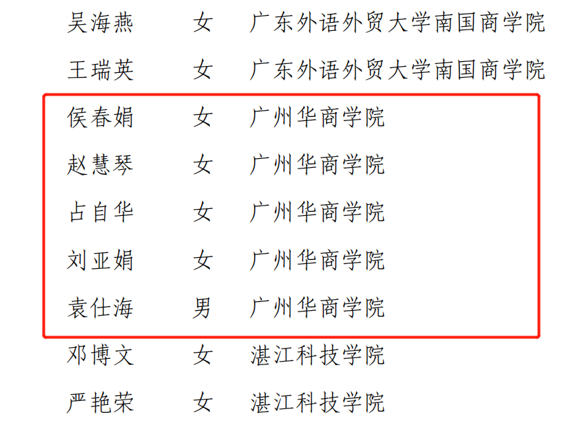 广东省民办教育优秀教师名单