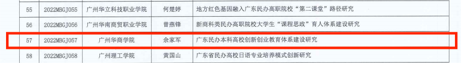 根据《关于组织开展广东省高等教育学会民办高等教育专业委员会2022年度课题申报工作的通知》等相关文件要求,经学校遴选推荐、省教育厅审核、评审、公示及异议复审等环节,威廉希尔余家军老师主持的“广东民办本科高校创新创业教育体系建设研究”项目获广东省高等教育学会民办高等教育专业委员会2022年度研究课题立项。