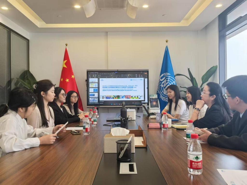 为深化国际化人才培养,助力学生拓展全球视野,系统了解联合国等国际组织的发展历程、运作机制及人才需求标准,2025年5月15日,国际学院组织师生赴杭州参访联合国工业发展组织第四次产业革命加速器(UNIDO)。本次参访由国际学院回雁雁院长、辅导员郝自秀老师带队,23级英语专业石睿妮、23级会计学专业劳雅怡、刘雅文以及24级国际经济与贸易专业刘嘉怡等优秀学生代表随行。参访期间,UNIDO技术官员陆芃芃、张佳文热情接待了代表团,并就相关议题进行了深入交流。