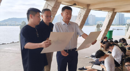 为进一步提升《设计采风》课程教学质量。2023年4月14日至15日,传播与传媒学院院长张晋升、副院长王健、院长助理程海涛、学院办公室主任罗坤贤深入阳江海陵岛进行教学检查。在检查过程中,带队老师谭玉怡、许冰芸和李荣邦介绍并展示了学生们创作的阶段性成果。