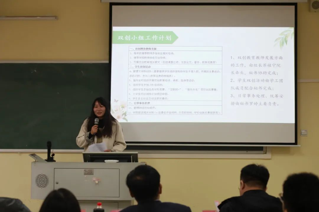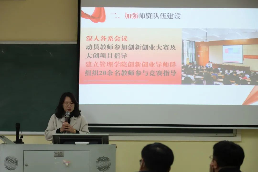 各二级学院双创秘书根据双创秘书年度考核工作通知要求,依次进行述职汇报。各双创秘书立足自身岗位职责和各二级学院双创工作的开展情况,从组织领导、师资队伍建设、学生干部队伍建设、创新创业教育、创新创业实践、工作成效等方面汇报自己的工作情况,总结和反思自身工作。针对各双创秘书述职情况,学校创新创业教育考核工作领导小组给予了肯定,并提出了改进意见。