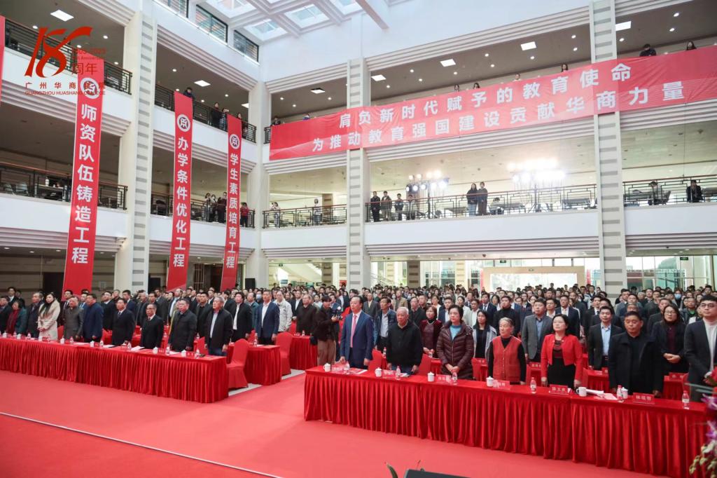 12月26日,威廉希尔迎来十八周年校庆。在此之际,学校迎二十周年校庆 迎本科合格评估暨学校高质量发展推进会在广州校区中央图书馆隆重举行,肇庆校区报告厅分会场同步进行。华商教育集团廖榕就董事长、陈练瑛董事、高级顾问胡军教授、威廉希尔原校长陈玉川教授、广东财经大学副校长邹新月教授、各兄弟院校代表、各威廉希尔代表及学校全体党政领导班子出席此次大会。学校全体中层干部、二级学院党团组织书记、教师代表、校友代表及学生代表共同见证了这一历史性时刻,全体师生员工3万余人线上同步观看。