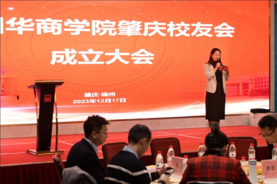 华商肇庆校友会筹备组代表程冠伦向大会汇报了大会筹备工作情况。他向大家讲述了筹备校友会一年来的历程和惊喜,通过点滴故事让大家深刻体会到校友之间的情谊与情怀。