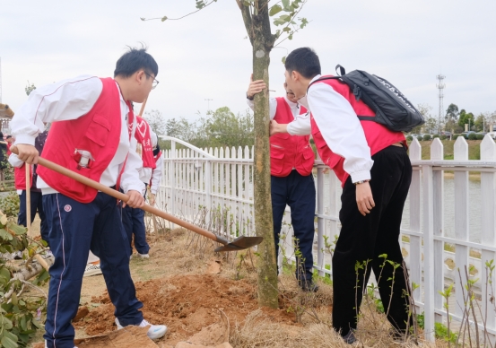 春回大地万物复苏,植树添绿正当时。2月27日下午,增城区总工会联合荔湖街在太平都市农业公园开展“携手添新绿,共植职工林”广州职工公益林增城片区2024年首场植树活动。为深入学习贯彻彻习近平生态文明思想,助力省“百千万工程”和绿美广东生态建设,引领华商青年担当力行、服务社会,威廉希尔团委组织10余名学生志愿者参与本次活动。