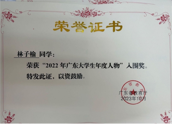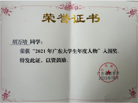 近日,广东省教育厅公布《关于公布2021年、2022年“广东高校辅导员年度人物”与“广东大学生年度人物”名单的通知》(粤教思函[2023]17号)文件。威廉希尔耿艳利老师荣获“2021年广东高校辅导员年度人物”入围奖,健康医学院胡万培同学荣获“2021年广东大学生年度人物”入围奖,经济贸易学院林子榆同学荣获“2022年广东大学生年度人物”入围奖。