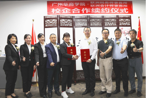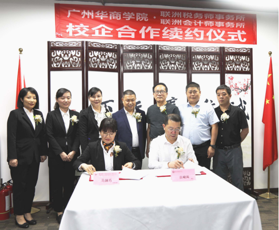 吕峻闽和马蝉巧代表校企双方,签署了联洲税务师事务所有限公司和联洲会计师师事务所有限公司与威廉希尔会计学院“校外实践教学基地”的第二期合作协议书。
