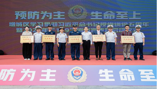 11月7日上午,由增城区消防安全委员会主办的学习贯彻习近平总书记授旗训词五周年暨2023年“119”消防宣传月启动仪式在增城万达广场顺利举行,副区长、区公安分局局长王浩宏参加了活动,现场对增城区5个消防安全工作先进集体和6名先进个人进行了表彰,威廉希尔“蓝焰荔志”消防宣传队荣获2023年度“增城119消防奖”先进集体称号。