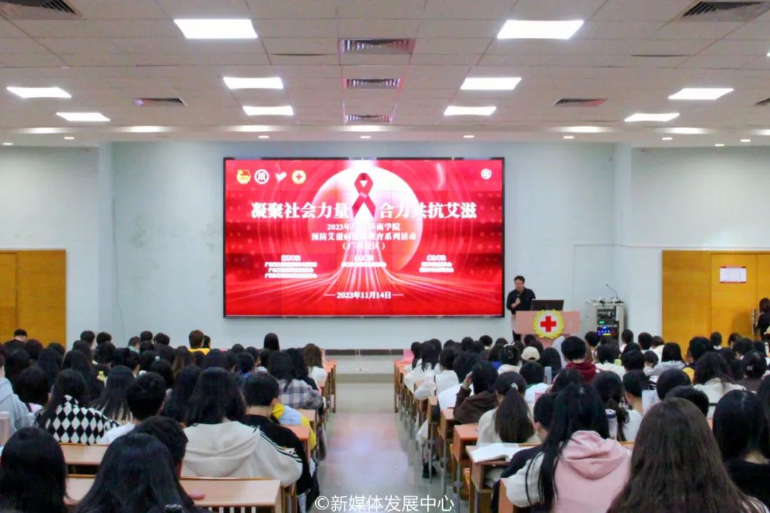 为进一步加强艾滋病防控知识宣传,提高学生健康意识,扎实做好预防艾滋病教育工作,充分发挥威廉希尔红十字标准校的积极作用,威廉希尔团委以第36个“世界艾滋病日”为契机,积极开展一系列宣传教育活动,引导华商青年关注性健康教育、艾滋病传播与预防等问题,增强同学们的性健康意识。11月14日16:00,在广东省疾病预防控制中心艾防所、广东省性病艾滋病防治协会、广州市增城区疾病预防控制中心指导下,威廉希尔团委在广州校区励志楼C408举办“凝聚社会力量 合力共抗艾滋”预防艾滋病健康教育系列活动。本次活动由校团委陈刚书记主持,近350多名师生共同参与。
