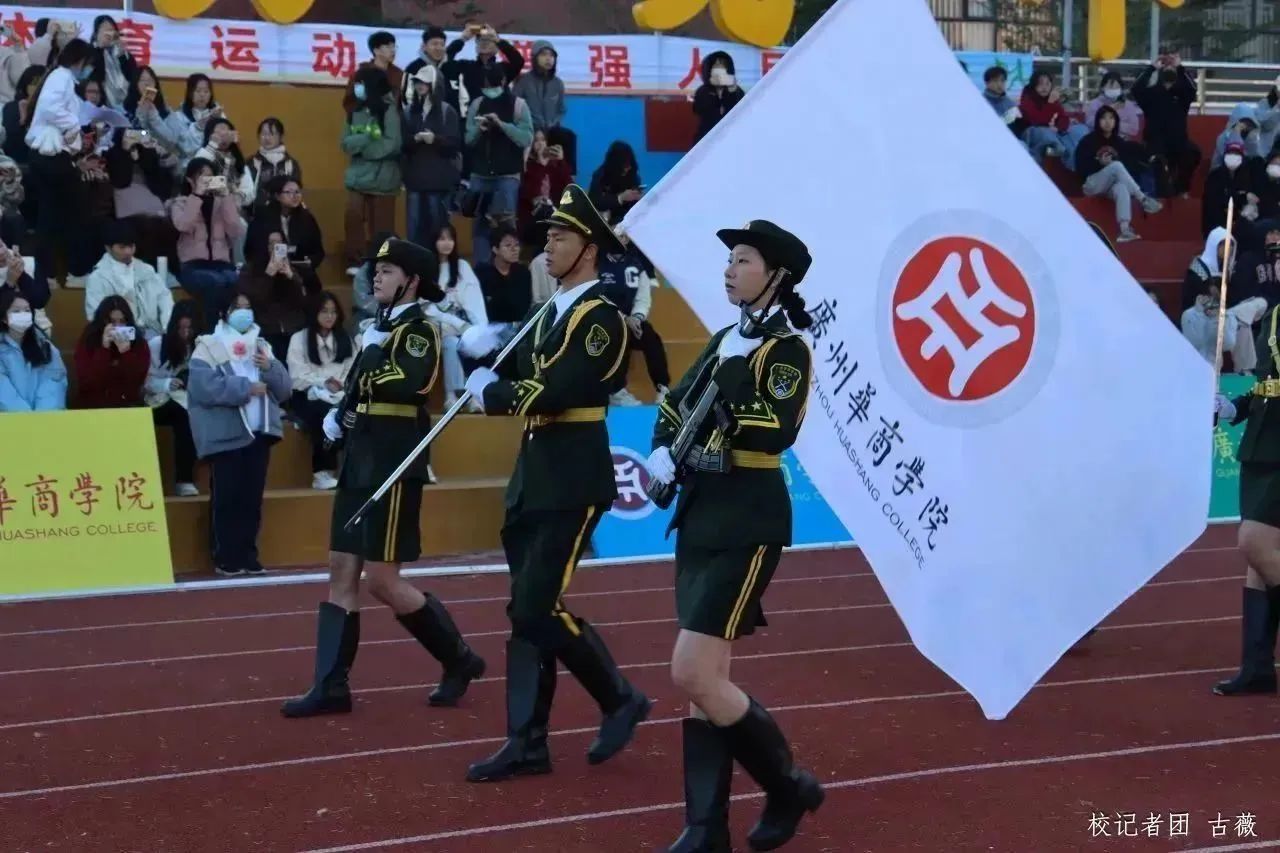 伴随着铿锵有力的《运动员进行曲》,国旗护卫队、彩旗方阵、各二级学院方阵、教职工代表队及裁判员方阵陆续入场。华商学子神采奕奕,迈着整齐稳健的步伐,彰显青年的蓬勃朝气。