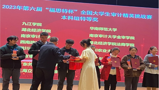 福思特杯全国大学生审计精英挑战赛,不仅是一次学术竞技,更是一次实践与理论的结合。比赛内容涵盖了政府审计学、内部审计学、CPA审计等审计相关的专业知识,以及审计实务案例分析多个方面,全面考察了参赛者们的审计专业知识储备、审计实务应用能力、综合分析能力和团队协作能力。这个荣誉的背后是无数个日夜的努力和付出,从9月27日校内赛选拔脱颖而出后,历时近2个月,三位同学在老师的辅导下每天在审计系办公室刻苦学习到子夜,全力以赴备战,拿出了审计人吃苦耐劳的本色!在比赛过程中,他们遇到了许多困难和挑战。但是,团队成员们并没有被困难所吓倒,而是以更加坚定的信念和毅力,迎接挑战,克服困难。他们坚韧不拔、精诚合作,在比赛中突破自我,功夫不负有心人,努力终有回报。