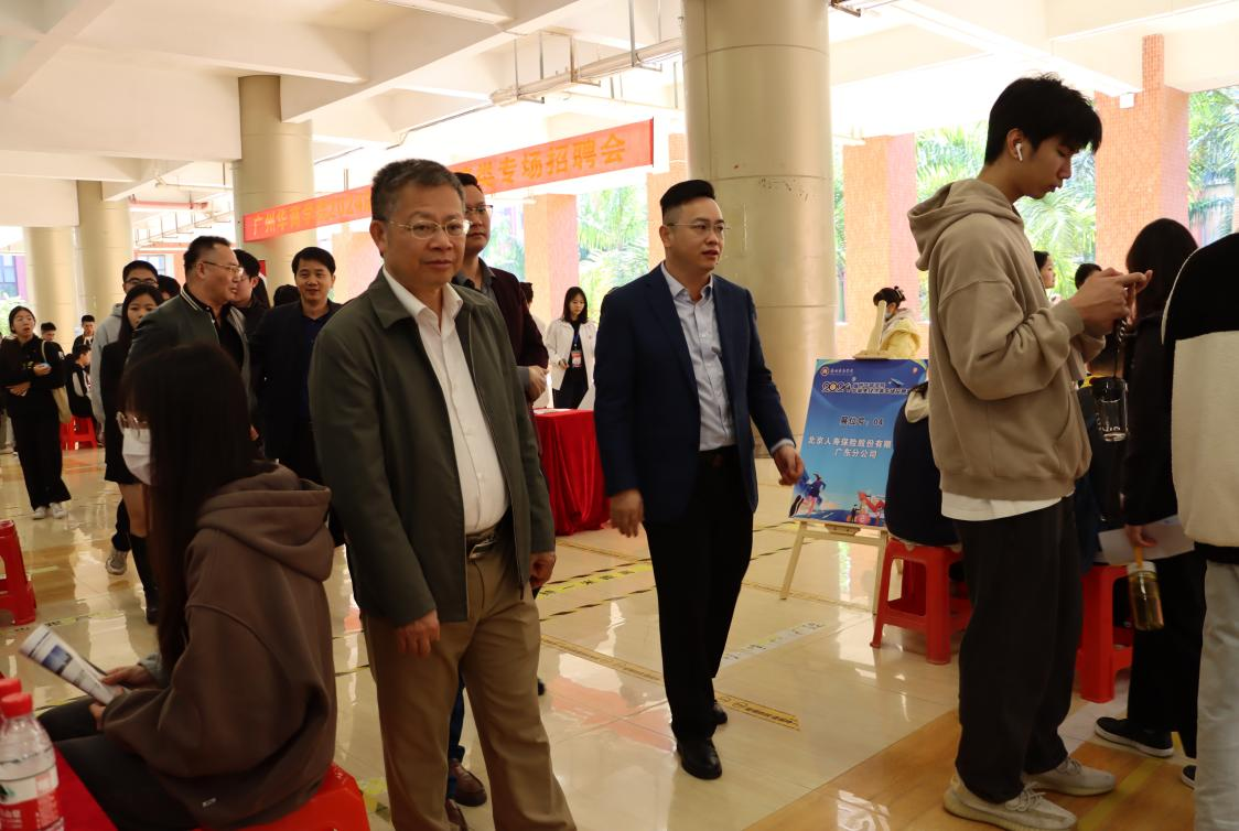 校长助理黄伟新,就业指导中心主任曾龙威,经济贸易学院院长李广明、会计学院主持工作副院长刘善球、党委副书记陈洋广、副院长杨旻、经济贸易学院党委副书记宋元跃,金融学院党委副书记邱会锋及相关工作人员到会指导工作,现场与企业和毕业生进行交流。