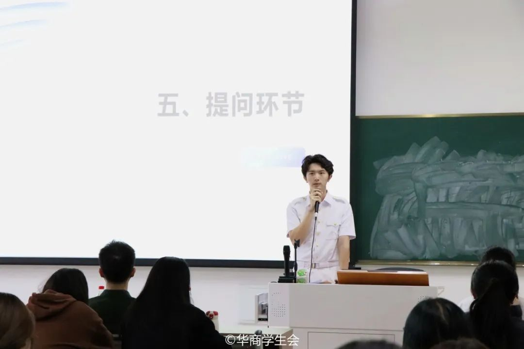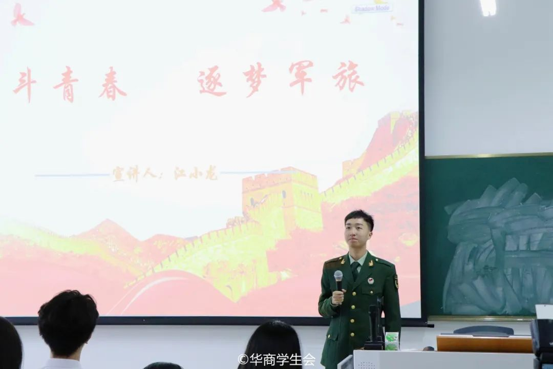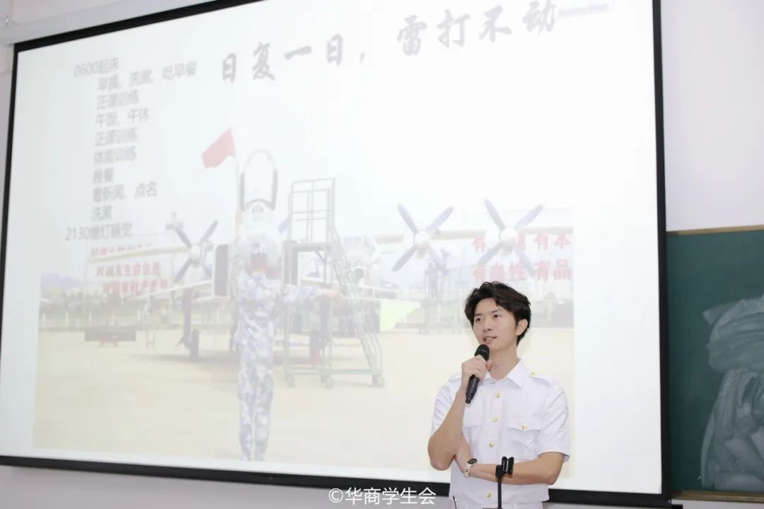 通过两位主讲人的分享,同学们对两位同学以军旅诠释青春,用奋斗书写人生的精神表示敬佩,对军旅生活有了更加深入的了解。生逢盛世,肩负重任,广大华商青年应与时代同步伐,锤炼自己,勇于开拓,积极投身强军建设,在火热的青春中放飞人生理想,用实际行动书写勇气担当,把青春之花绽放在祖国沃土之上!