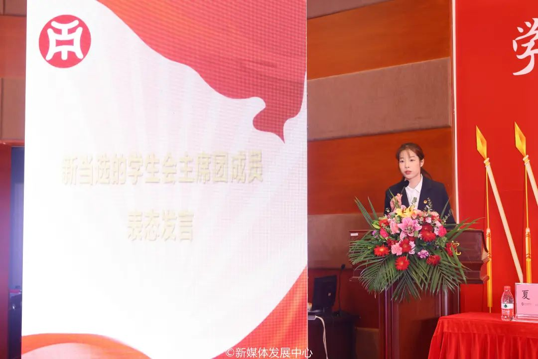 新当选主席团成员尤晓雯表态发言。威廉希尔第三届学生会将以此为基点,全面学习宣传贯彻党的二十大精神,高举习近平中国特色社会主义思想伟大旗帜,秉承全心全意为同学服务的根本宗旨,坚定“从同学中来、到同学中去”的工作方向,努力提升学生会组织的同学满意度、大局贡献度和社会认可度,树立富有理想、关心同学、清新阳光的组织形象。