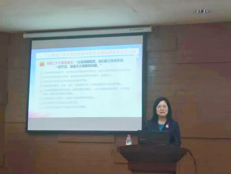 随后,刘苍劲教授以美国为例,通过生动具体的史实介绍了美国大打司法牌、科技牌、贸易牌、台湾牌等手段遏制、打压、制裁中国,以此论述中国式现代化面对的复杂国际形势,并结合党的二十大报告分析了八项国内面临的困难和问题。