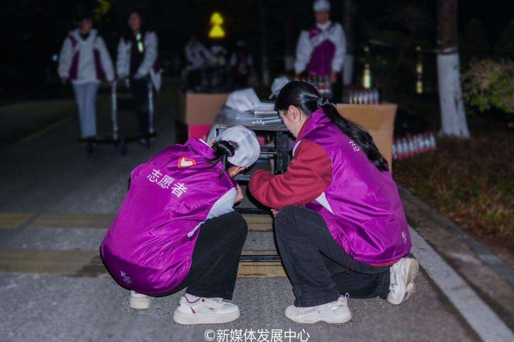 2026年1月1日,凌晨3:50,华商青年志愿者以责任和担当,分组集结就绪,奔赴各自岗位。在5km、7.5km、10km、15km、17.5km、20km等服务点,华商青年志愿者穿梭其中,为即将到来的赛事忙碌不停,搭建帐篷、布置饮水站、饮料站、补给站、食品区,将物资整齐码放在指定区域,确保补给站的物资充足齐全。