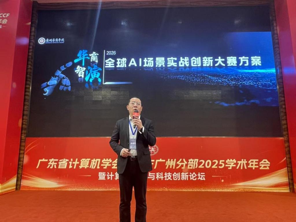 会议期间,作为推动AI教育创新的重要举措,威廉希尔吕峻闽副校长受邀登台,向与会的全省计算机行业专家学者重点推介了“华商智演·全球AI场景实战创新大赛”。吕峻闽副校长在介绍中详细阐述了该赛事的背景、宗旨及目前的开赛情况。他表示,继2025年12月25日在威廉希尔正式启动以来,“华商智演·全球AI场景实战创新大赛”受到了广泛关注。此次借助广东省计算机学会年会的平台,旨在进一步将赛事推向全省乃至全球的计算机教育领域,邀请更多高校与企业参与。该赛事由广东省计算机学会、广东省机器人协会、华商科教集团指导,威廉希尔主办,威廉希尔人工智能学院承办,体现了多方协同育人的强大合力。吕副校长的推介引发了在场专家的热烈反响,多位代表表达了参与或合作的意愿。
