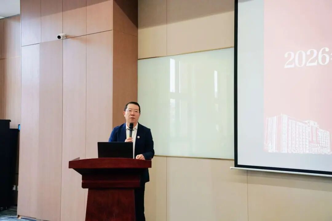 会上,吕峻闽副校长代表学校致欢迎辞。他向长期关心并支持学校发展的各合作企业嘉宾表示热烈欢迎和衷心感谢,同时阐述了集团及学校对产教融合工作的高度重视与部署安排。他指出,2026年是学校发展的关键之年,学校将以顺利通过本科教学工作合格评估、构建应用型人才培养新生态为核心目标,推动产教融合工作实现“数量扩展”与“质量提升”的双飞跃。围绕这一核心目标,学校将从优化迎评支撑、完善体制机制等七大方面精准发力,全面构建产教融合发展新生态。他希望校企双方进一步深化联动、紧密携手,学校也将以最大诚意、最优服务、最好政策,为各合作企业搭建更广阔的合作平台,提供更多元的合作空间,携手实现共赢发展。