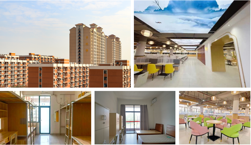 学校学生宿舍类型设有三人间、四人间及六人间,所有的宿舍都配备空调、饮水机、洗衣机、独立卫浴以及阳台;各教学楼、实验楼、饭堂均实现空调全覆盖。