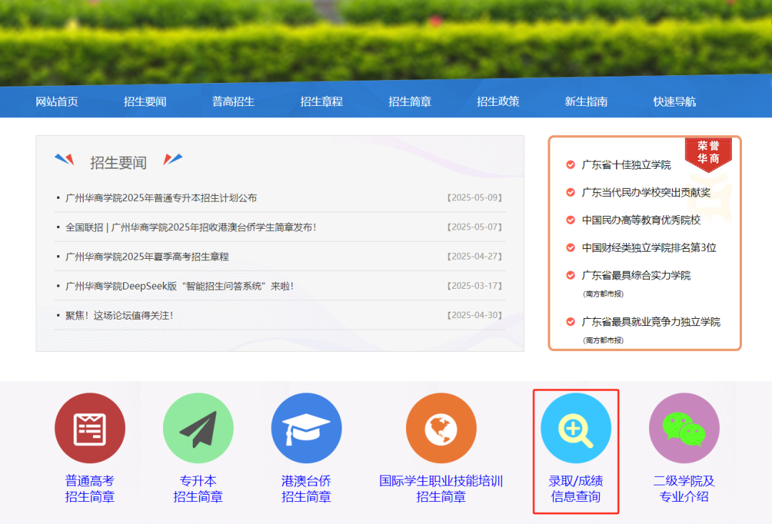 查询网站:威廉希尔招生信息网(http://zs.gdhsc.edu.cn/)