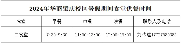 第二食堂为肇庆校区2024年暑假期间值班食堂,暑假假期间正常供餐。