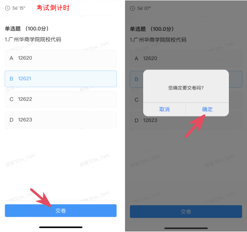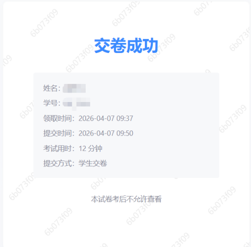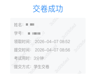 点击“交卷”后,界面显示“交卷成功”即可结束考试。