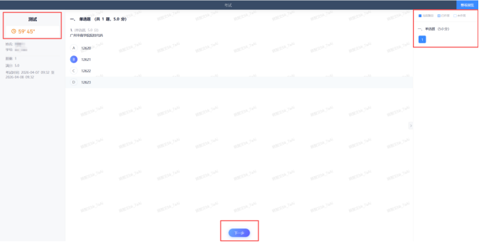 2.离开或退出考试界面答题计时不停止;考试到达截至时间,系统将自动交卷。