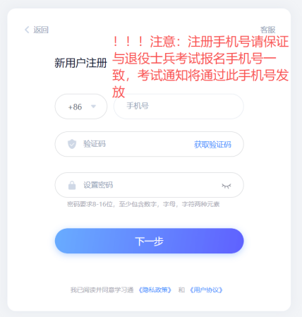 注意事项:注册手机号确保与普通专升本报名系统预留手机号相一致,考试通知将通过此手机号发送至个人学习通。