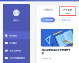 登录后,进入到个人空间页面,点击“我学的课”,即可看到“2026年退役士兵普通专升本综合考查”课程,点击后即可进入课程详细页面,选择“考试”进入综合考查科目考试。
