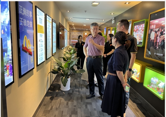 随后,在企业代表的带领下,威廉希尔一行参观了广东三元麦当劳食品有限公司总部,通过企业文化墙了解到麦当劳中国发展历史、麦当劳培养人才的理念以及职业发展规划,对麦当劳企业文化有了进一步的认识。