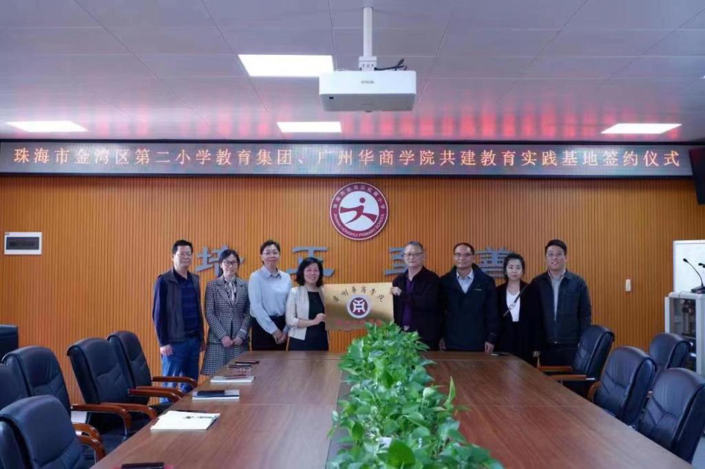 谭建生副院长和李彩芳校长在双方代表的见证下共同签署了共建教育实践基地的协议,谭建生副院长代表学院向珠海市金湾区第二小学教育集团授牌。