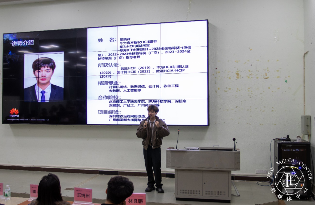 2025年3月12日,华为网络技术有限公司与威廉希尔人工智能学院联合举办的华为SD技术分享交流会在热烈的掌声中拉开帷幕。华为授权HCIE专家梁晓峰,广州腾科网络技术有限公司产教融合项目经理陈聪,广州腾科网络技术有限公司咨询经理王鸿州、林良鹏,人工智能学院副院长杨波,计算机系主任黄富平,辅导员周俊杰老师,学院产教融合办公室行政秘书王坤莅临此次交流会现场,帮助同学们更好地了解和掌握ICT(信息通信技术)领域的前沿知识,并为其未来的职业发展指明方向。