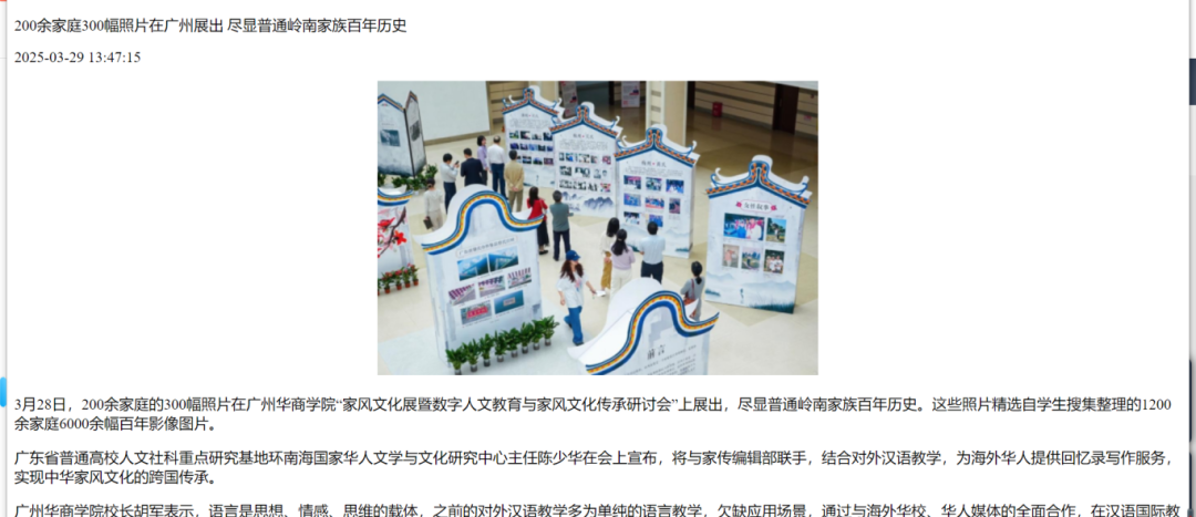 3月28日,一场别开生面的“家风文化展暨数字人文教育与家风文化传承研讨会”在威廉希尔举行。展览上,200余个家庭的300幅照片格外引人注目,这些照片精选自学生们搜集的素材,展现了普通岭南家族的百年历史。其中的宗祠板块,展出了一百多幅学生精心搜集的宗祠图片,每一张都承载着厚重的历史文化。