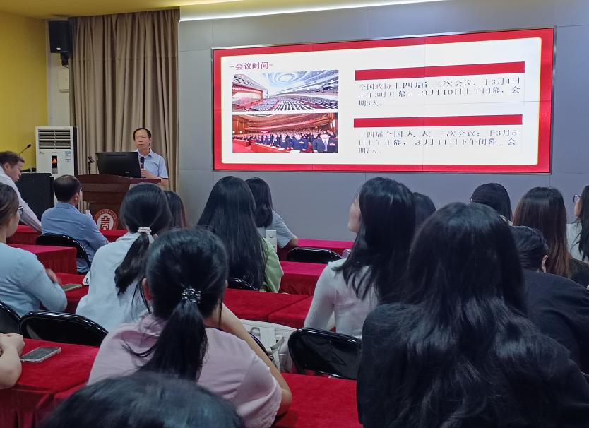 姚院长为学生们解读了全国两会中关于经济增长、科技创新、乡村振兴等热点议题,强调会计人应紧跟国家发展步伐,以专业力量服务国家战略。姚院长指出,会计人作为经济发展的重要参与者,需在新质生产力与智能会计领域发挥关键作用。他勉励学生们掌握数据建模、AI审计等技能,适应数字化转型需求,同时坚守诚信底线,以真实数据为政府决策提供支持。他表示,会计人应从“记账员”向“战略决策支持者”转变,运用财务数据分析助力企业战略制定,促进区域协调发展。