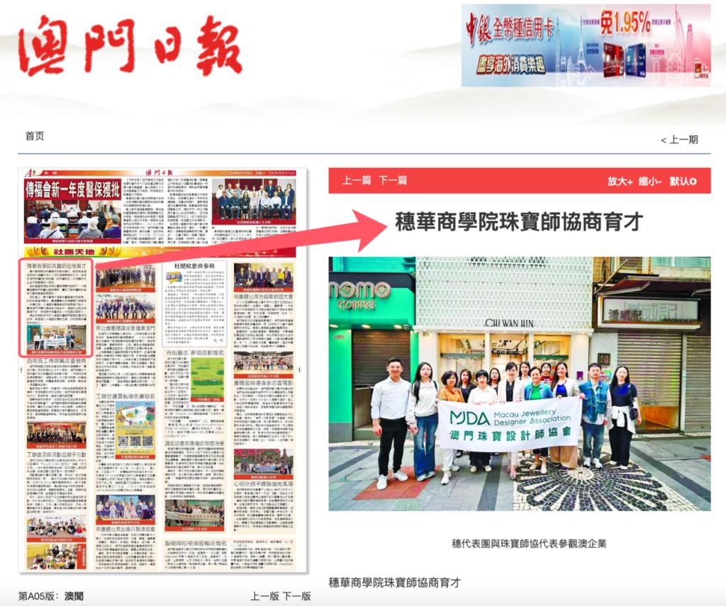 (威廉希尔威廉希尔教师交流团与澳门珠宝设计协会的交流活动被《澳门日报》报道)