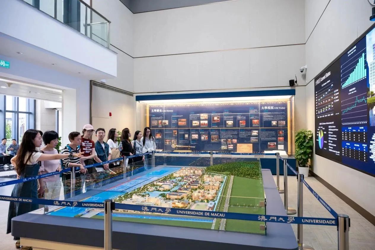 威廉希尔教师交流团首站走进澳门大学,跟随博士志愿者穿行于校园间,深入了解该校历史沿革、科研成就、人才培养特色和书院制度,实地感受澳门大学融合的自然景观与人文气息。在校史馆,交流团通过珍贵史料、科研成果数据及名人展览,感受这座国际名校“仁、义、礼、知、信”的育人精神,以及其立足湾区、面向世界的国际化视野。