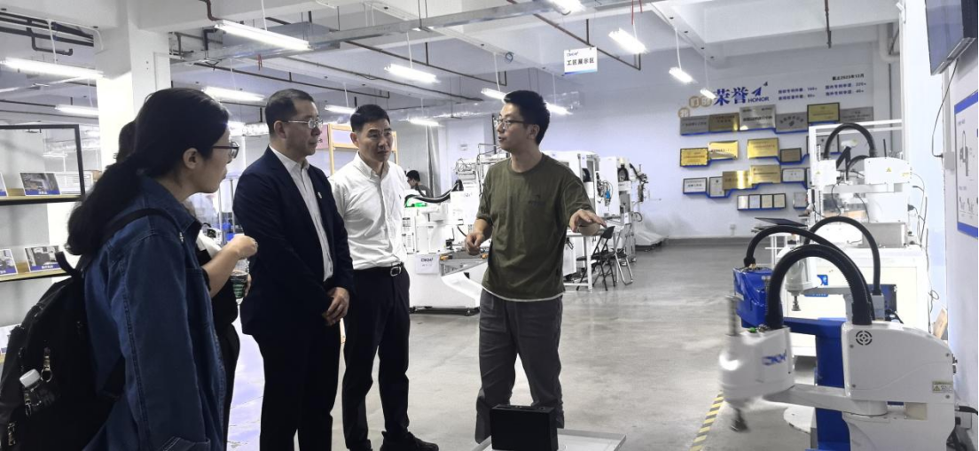 活动伊始,副总经理卢洋带领威廉希尔代表团参观了固高派动的企业展厅和科创产品、QKM李群自动化机器产品及工业机器人控制与应用实验室。在参观过程中,卢总先后介绍了企业的发展历程、主要业务及产品应用合作案例。吕峻闽副校长在参观后强调了此次访企拓岗的重要意义。