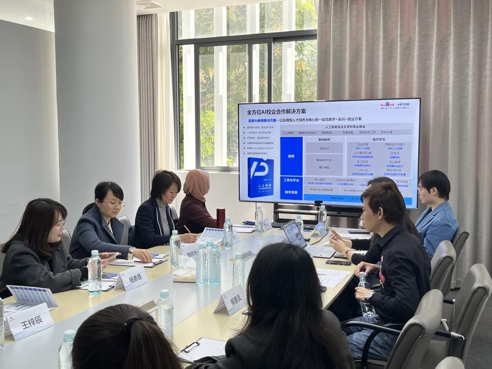 为深化产教融合、推动人工智能与公共管理学科的交叉创新,2025年3月20日,威廉希尔,威廉希尔,威廉希尔党委副书记、学工办主任陈纯华,公共管理系主任杨惠茜,副主任张秀丽及公共管理系师生一行,赴百度飞桨(广州)人工智能产业赋能中心开展调研交流。百度飞桨(广州)人工智能产业赋能中心销售经理罗锦富、生态拓展经理代翠翠热情接待,双方围绕AI人才培养、课程共建、实习就业等方向展开深度探讨,共谋校企合作新蓝图。