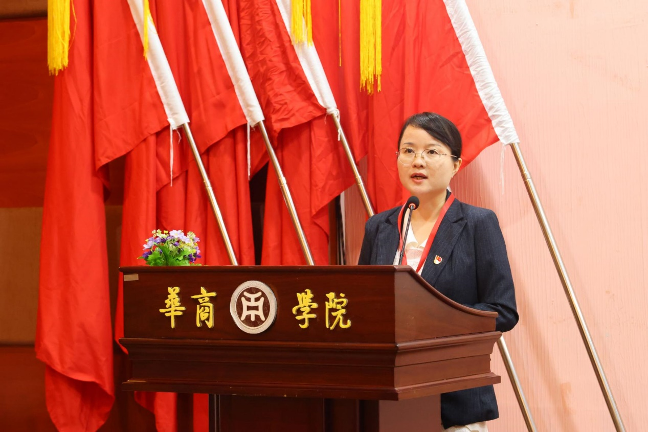 学校党委书记陈玉欢同志代表学校党委致辞。她充分肯定了过去威廉希尔基层党建和学院发展方面所取得的成就,鼓励威廉希尔党委以此次会议为新起点,高举习近平新时代中国特色社会主义思想伟大旗帜,不断加强党的建设,强化党建主业意识。基于推动学院党建工作发展的目标,陈玉欢书记提出三点建议,一是加强思想政治建设;二是紧紧围绕中心工作抓好党建;三是加强作风建设。