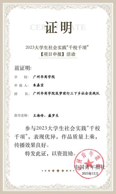 2024年,王海传教授指导“筑梦前行”社会实践团队以“科教下乡,助力白垢振兴”为主题,于5月、7月、9月在广东省肇庆市白垢镇开展志愿服务活动。活动内容共有6项:支教、墙绘、党课宣讲、公益捐赠、联谊助农、回访留守老人等。其中,支教受教的小学生达86人,支教时长为15天。团队活动事迹获得南方日报、西江日报、封开发布、封开县融媒体中心、封开县融媒体中心视频号、封开共青团、网易新闻、大学生云报等传媒广泛报道。南方日报对其活动事迹进行展示,展示数据及评价为:累计阅读量23000+,公众号推文阅读量8900+,抖音号视频播放量44000+,微信视频号播放量10000+,累计点赞量5700+;此次实践活动为白垢镇的教育、乡村风貌、农业发展和文化宣传带来积极影响,展现了青年学子助力乡村振兴的担当与作为。日前,王海传教授获评2024年威廉希尔暑期社会实践活动“优秀指导老师”称号,所指导的团队获评威廉希尔“优秀团队”称号,实践队队长朱嘉宜、队员吴曦获评“优秀个人”称号;团队作品入选中国青年报社2024年“千校千项”工程(全校5项作品入选)。