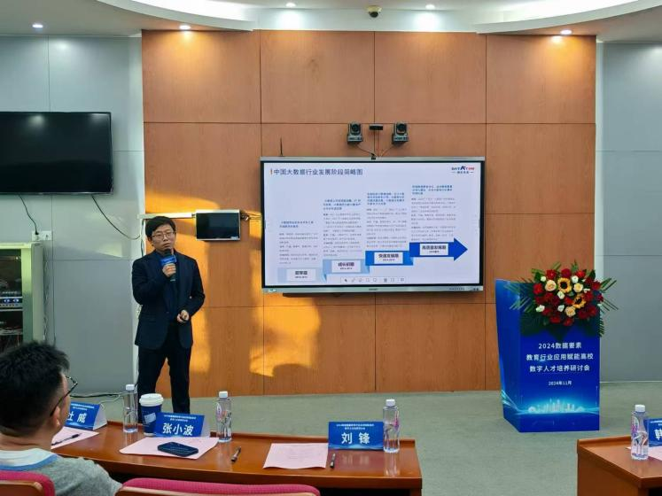 上海德拓信息技术股份有限公司产教融合总监娄景亮先生作《数据要素产教融合助力高校数字人才培养》主题演讲,强调了产教融合在数字人才培养中的关键作用。