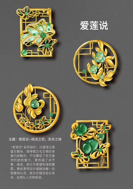 设计思路:《爱莲说》系列设计,以莲花与莲蓬为载体,将传统文化与现代审美巧妙融合,不仅展现了东方美学的独特魅力,更传递了关于爱、纯洁、成长与希望的深刻寓意。愿此系列设计能触动每一位观者的心灵,成为连接过去与未来、自然与人文的桥梁。