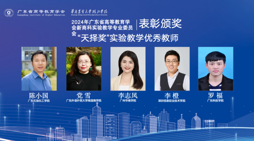 “天择奖”广东省高等学校新商科实验教学优秀教师评选活动由广东省高等教育学会新商科实验教学专业委员会发起,从广东省数百所高校长期从事新商科实验教学任务的一线教师中选拔,经学校申报、专家组匿名评审选出20名优秀实验教师予以奖励,旨在弘扬先进,树立典型,表彰为新商课实验教学建设作出特殊贡献的教师或实验管理人员,激励高校教师及实验管理人员努力投身于新商科实验教学的建设与改革事业。
