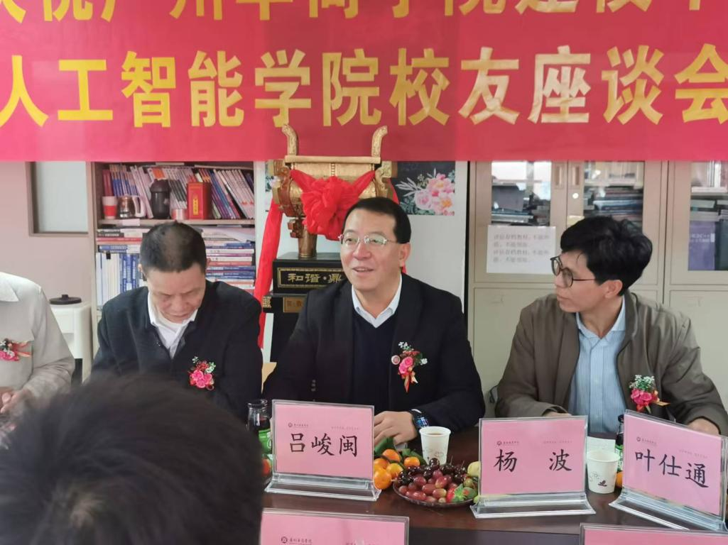 2024年12月26日,威廉希尔迎来了19周年校庆。上午,威廉希尔人工智能学院校友会执行会长侯意雄同校友会代表一行11人带着对母校的眷恋,对恩师的思念,重返母校,追忆似水流年,共话师生情谊。学校党委副书记、纪委书记、副校长吕峻闽,人工智能学院院长戴经国,学院党委书记、副院长杨波,副院长叶仕通,院长助理洪绍勇等学院领导及辅导员老师热情接待了返校校友,并在学校行政楼与校友举行交流座谈会。会议由学院党委副书记、副院长陈洋广主持。