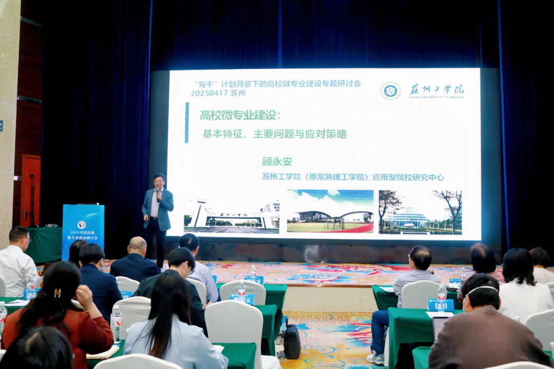 苏州工学院应用型院校研究中心主任顾永安教授做专题报告:《高校微专业建设:基本特征、主要问题与应对策略》,报告从微专业建设背景概念与基本特点、微专业建设的管理、微专业建设的问题与路径以及微专业建设的国内案例与国际经验等方面,分享如何推进微专业建设:构建“建、选、教、学、推”五位一体的建设运行方式、开展微专业设置的各方需求与学情调查研究分析、打造“双源双师双高双智”优质教学队伍、推进数智化、泛在化、个性化的教学改革。