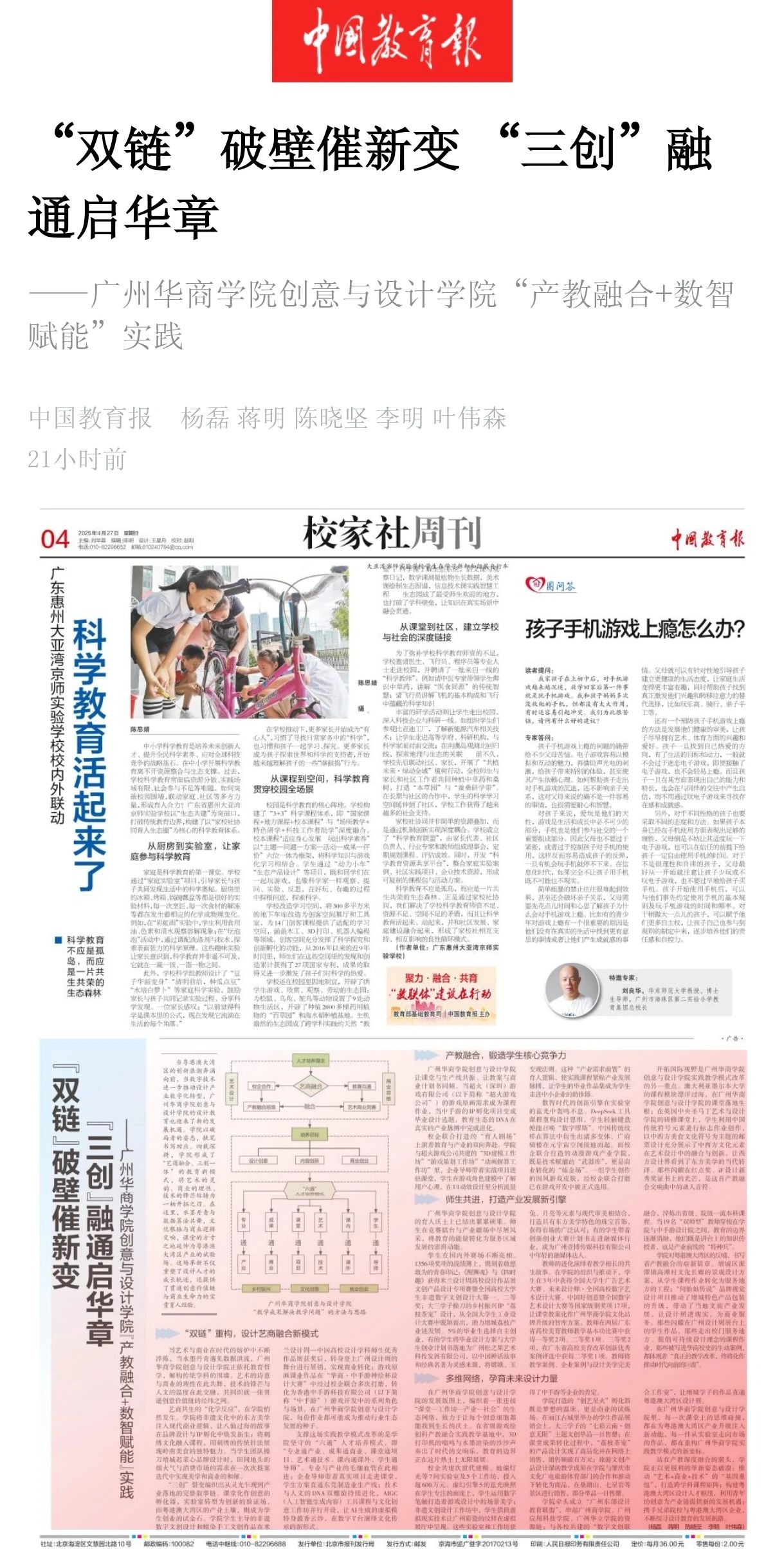 学院牵头成立“广州东部设计教育联盟”,串起广州商学院、广州应用科技学院、广州华立学院的资源链;与各校共建的“数字文创联合工作室”,让增城学子的作品直通粤港澳大湾区设计展。