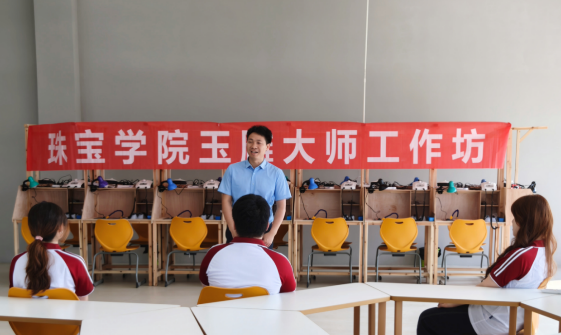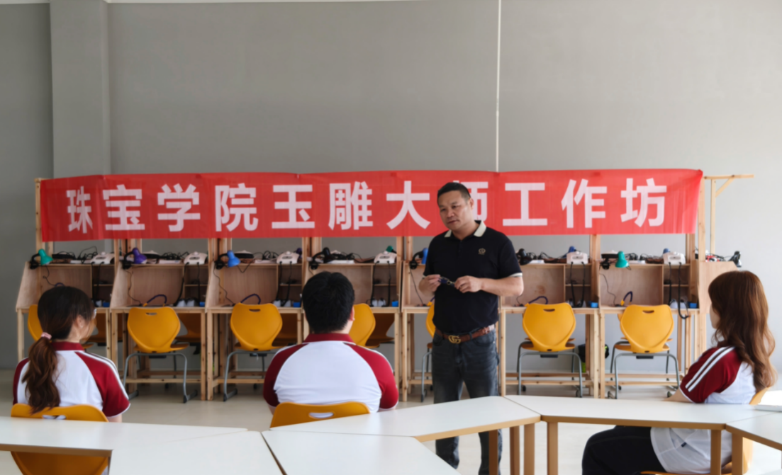 接着,朱晓红院长致辞发言,她表示:“陈明建大师作为非遗传承人与行业领军者,将三十年积淀倾注于此。本次工作坊是产教融合的深度实践,当前玉雕市场前景广阔,这方工作台将是梦想的起点!期待12位种子选手在技艺淬炼中传承文化基因,在创新突破中绽放光彩!”
