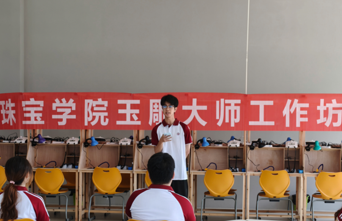 学员人手配备玉雕机和工作台,课程还创新融入企业需求分享与公众科普实践环节,让学员直面市场反馈并锻炼传播能力。工作坊建立了科学的过程考核体系,综合评估设计理念、工艺完成度、协作意识及作品展示效果。学员需提交完整作品(含设计稿)及实践报告结业,优秀作品将获评奖项并永久陈列于学院展厅。
