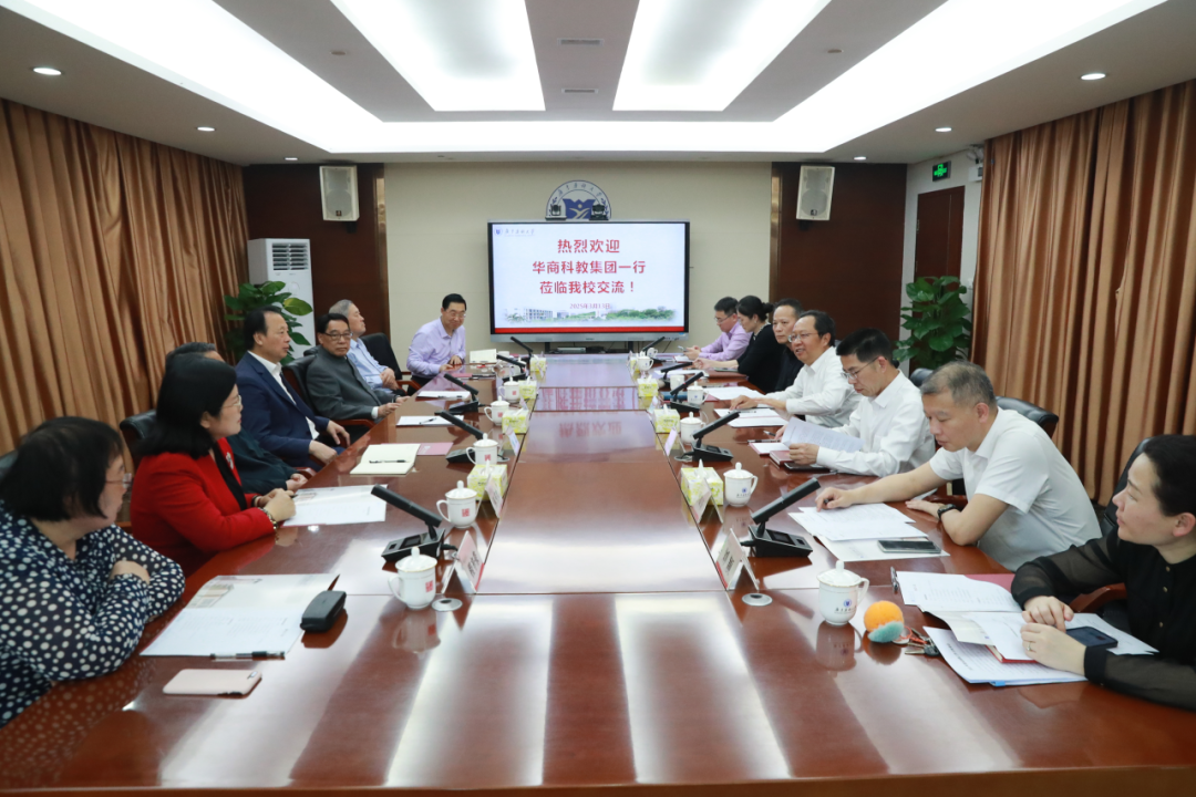 廖榕就董事长对广东药科大学的热情接待表示感谢。他详细介绍了华商科教集团的发展历程、业务布局以及在教育产业的战略规划。他指出,华商科教集团高度重视与广东药科大学在医药学科领域的深度合作,希望依托广药大雄厚的学术积淀与科研实力,优化集团教育资源配置,助力提升专业建设水平,实现科教协同的发展目标。